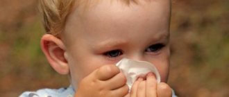 - Вирусные заболевания, сопровождающиеся появлением насморка. После слизистых выделений у малыша начинаются боли в горле, беспокоит першение, и как результат – сухой кашель;