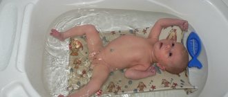 The first time you put a newborn in water, you need to be very careful so as not to scare him. The legs are immersed first, then the torso. Your task is not to scare the baby; he should enjoy the process so that next time bathing will be desirable.