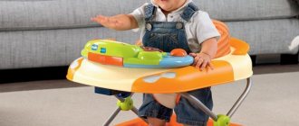 There are many devices for this, one of them is a walker, in which the child independently moves around the apartment, entertaining himself and delighting those around him. This is a wonderful device, but only after the child has learned to sit and crawl on his own. Pediatricians and pediatric orthopedists disagree. The former limit the use of walkers to 40 minutes a day, the latter recommend not exceeding 10 minutes.