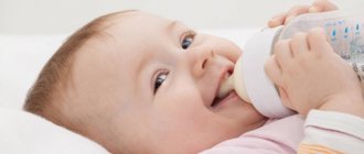 • If it is possible to breastfeed the baby even a little, then this must be done before bottle feeding. To do this, it is necessary to place him on his knees so that his upper body is raised almost to a sitting position. The bottle must be held horizontally. Serve into a wide open mouth, placing the entire nipple in the mouth up to the ring of the bottle, i.e. the nipple goes deep into the mouth like a mother's nipple. When the baby is ready to suck, the bottle is raised so that no air forms in the place where the baby receives milk from the bottle.