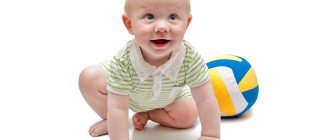 - Двигательные способности: ребенок должен уверенно сидеть на попе без поддержки, правильно ползать на четвереньках, ходить вдоль опоры или за руку взрослого.