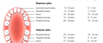 Порядок прорезывания молочных зубов у детей на втором году жизни: